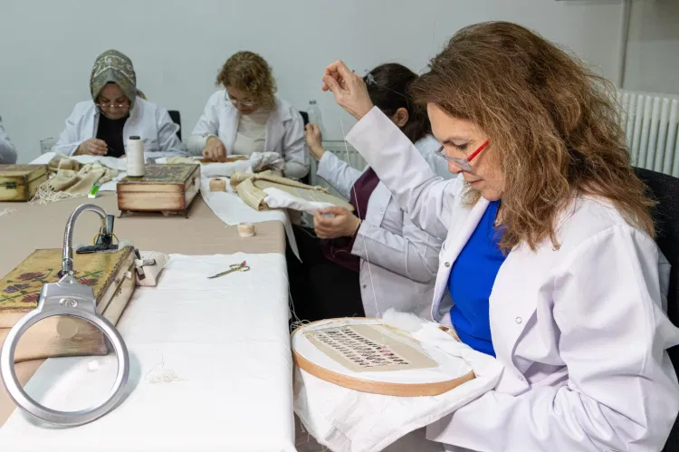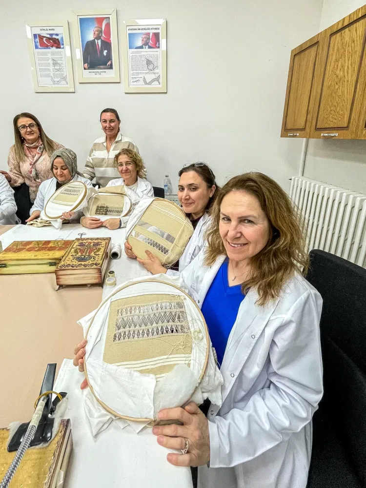 BURSA (İGFA) - Bursa Olgunlaşma Enstitüsü El Nakışları Sanat Evi’nde, Yalova Çınarcık’ın coğrafi işaretli “Çınarcık İşi”nin yaşatılması ve gelecek kuşaklara aktarılması amacıyla, Geleneksel El Sanatları Devlet Sanatçısı Sayın Bilge Şahin’in eğitmenliğinde gerçekleştirilen bu özel çalışma, sanatseverlerle buluştu. “Aile Sandığı: Her Sandık Bir Hikâye – Yedi Bölge Yedi Sandık” temasıyla şekillenen etkinlik, geçmişten günümüze uzanan kültürel sürekliliği görünür kılmayı amaçladı.