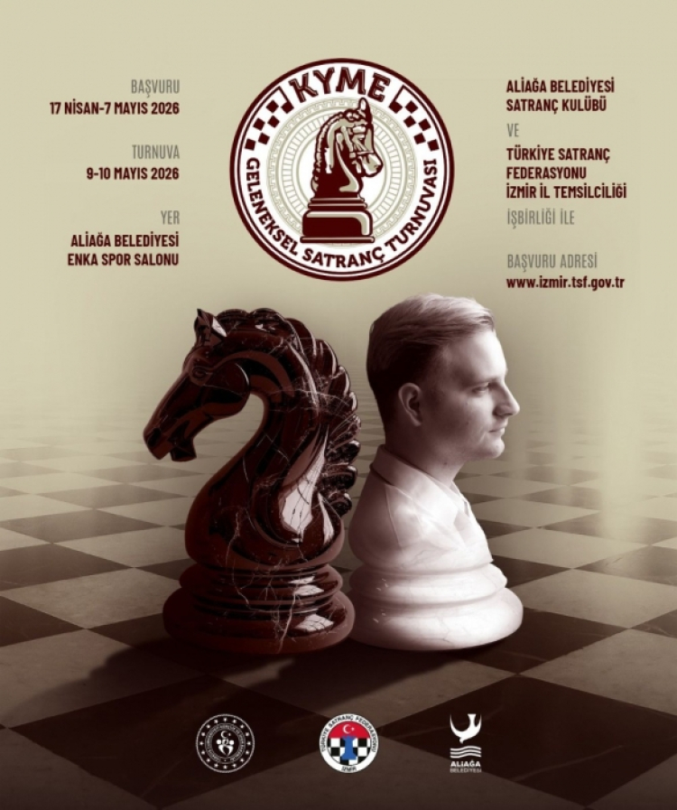 Aliağa'da 30. Geleneksel KYME Satranç Turnuvası, 9-10 Mayıs'ta Enka Spor Salonu'nda düzenlenecek. 2008-2019 doğumlu, TSF lisanslı sporcular katılabilir. Kayıtlar 17 Nisan-7 Mayıs arasında www.izmir.tsf.org.tr adresinden alınacak.